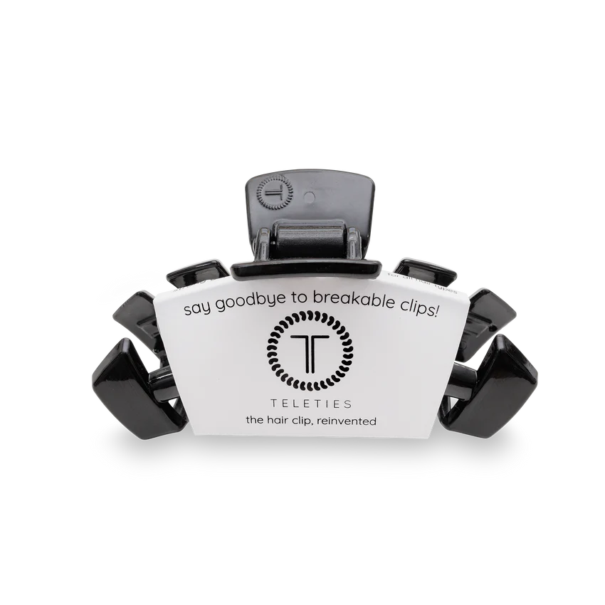 Say goodbye to breakable clips! We have perfected the hair tie and now have re-invented the hair clip. Each clip has bendable teeth that take back to shape, they work on all hair types and have a strong hold. Hold your hair and enhance your style with the new TELETIES Clip!