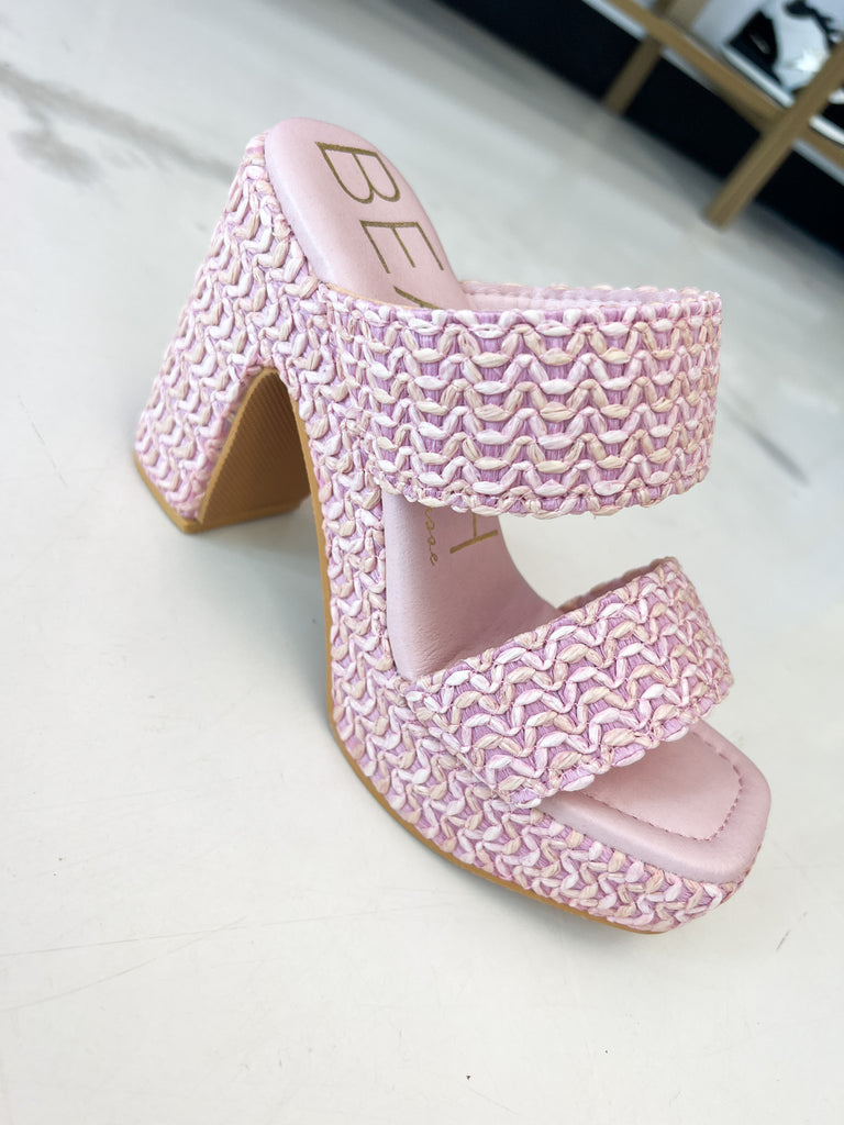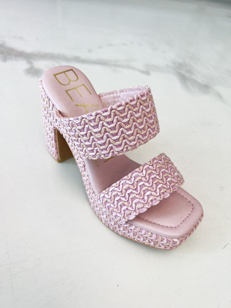 By the beach heel in the prettiest pale pink! These run half a size to a whole size small, we recommend sizing up!