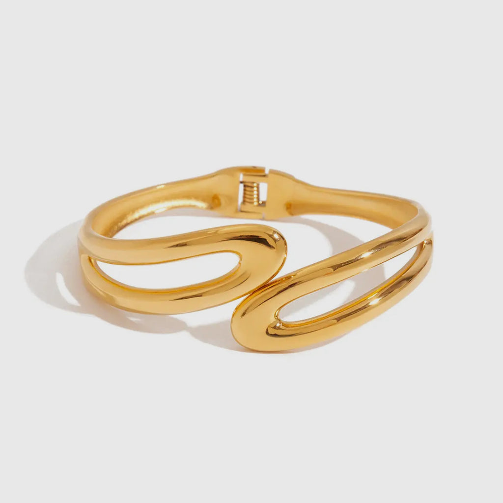 Gold Wave Cuff Bangle Bracelet (waterproof)