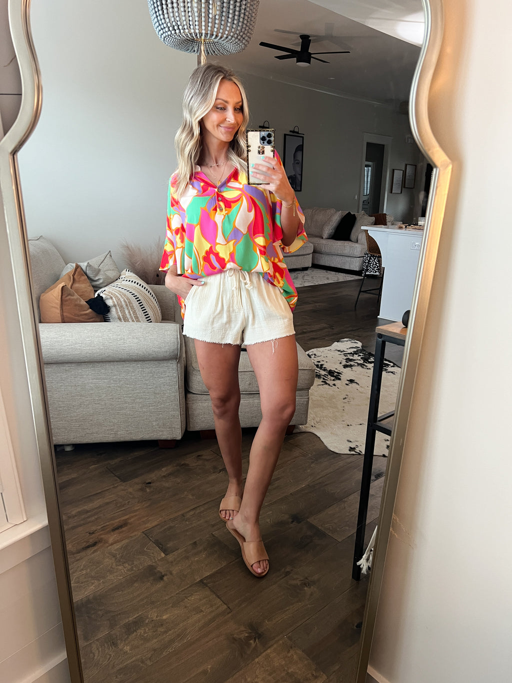 This top is so colorful & fun! The wildflower print + color combo gives off all the summer vibes! And these wing sleeves are so beautiful making it easily dressed up!