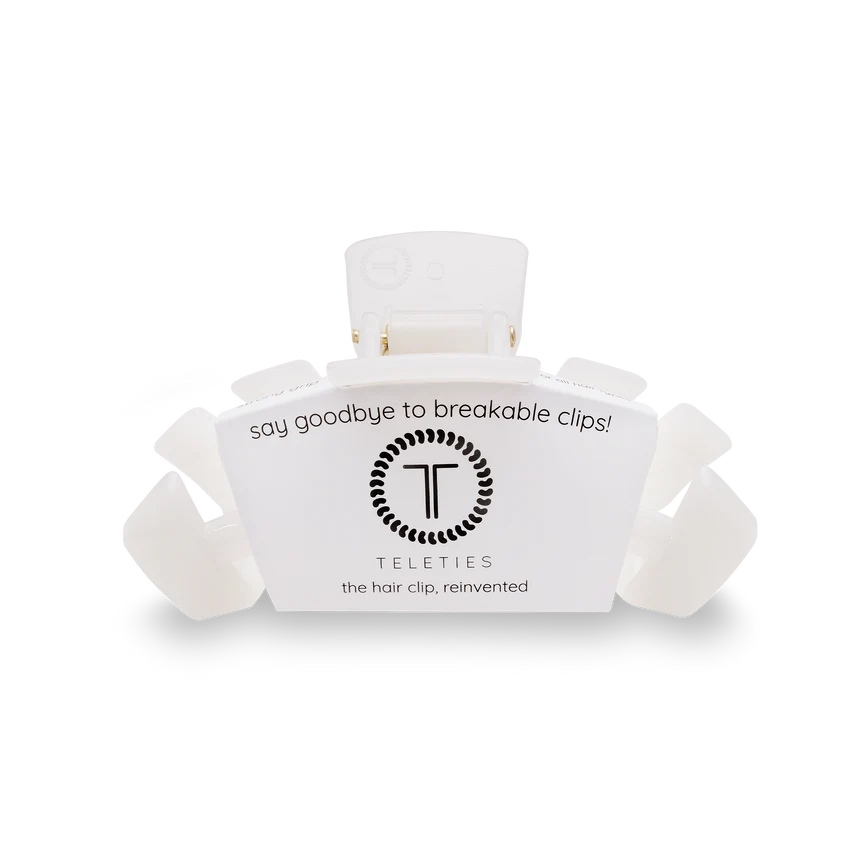 Say goodbye to breakable clips! We have perfected the hair tie and now have re-invented the hair clip. Each clip has bendable teeth that take back to shape, they work on all hair types and have a strong hold. Hold your hair and enhance your style with the new TELETIES Clip!